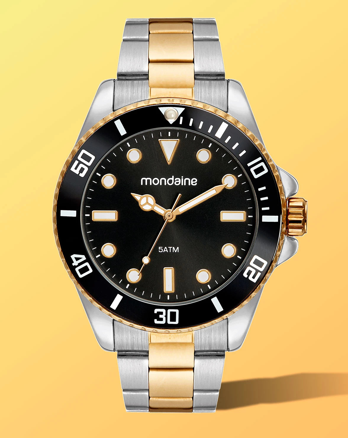 Robusto relógio masculino automático com caixa redonda de tamanho imponente e acabamento elegante. O mostrador, que pode variar em cores sóbrias ou vibrantes, confere personalidade e destaque ao pulso. A peça combina um design clássico com a praticidade. Sua pulseira em malha de aço complementa o estilo, oferecendo um caimento moderno e sofisticado em qualquer tonalidade.